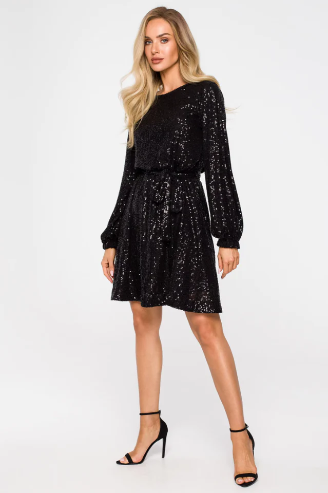 Women's Sequin Dress With Puff Sleeves