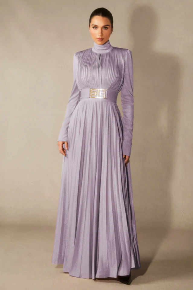 Women's Elsie Metallic Pleated Belted Maxi Dress