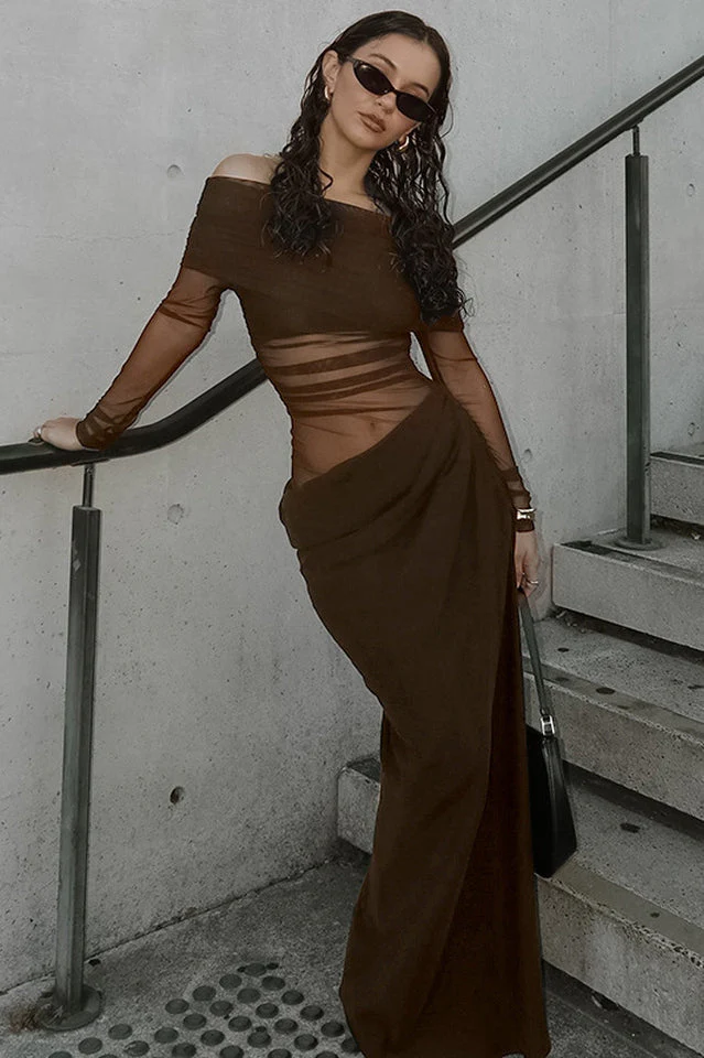 Women's Off-Shoulder Mesh Hollow-Out Bodycon Dress
