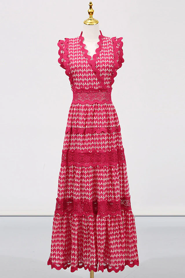 Women's Laser Cut Wavy Trim Maxi Dress