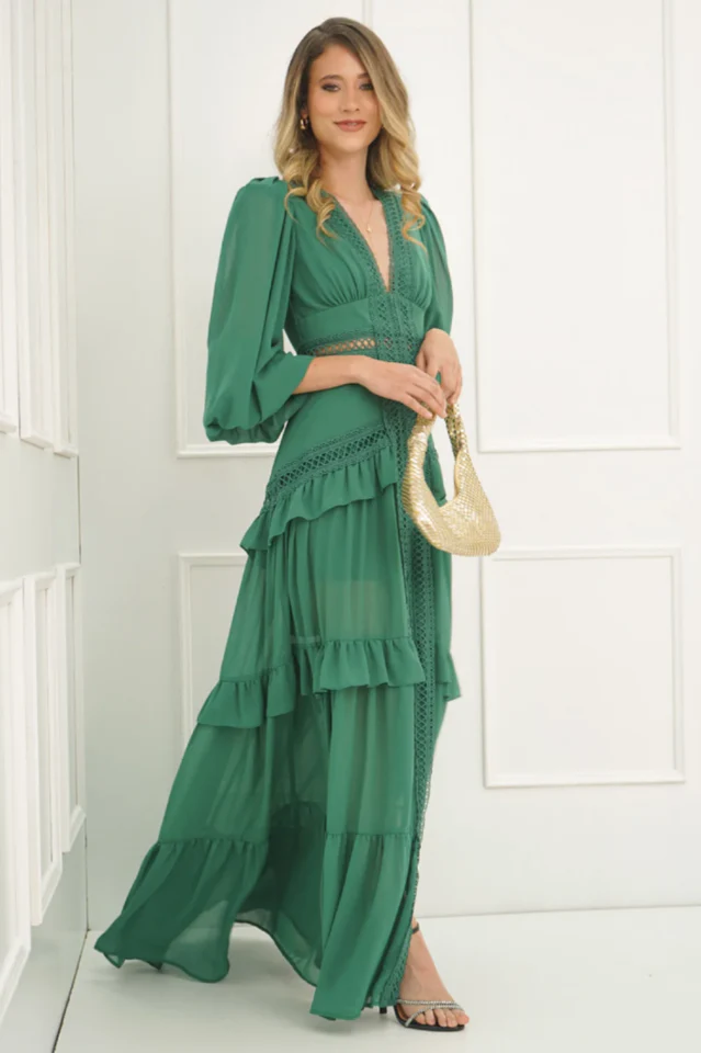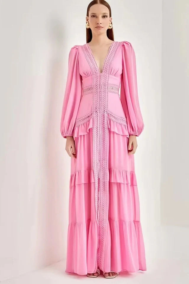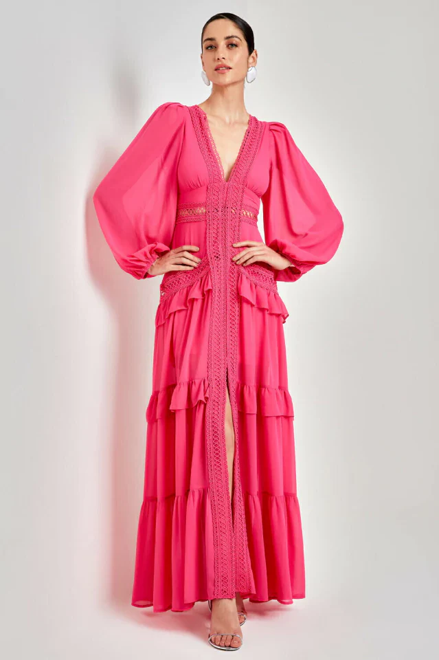 Women's Lorie Long Sleeve Ruffle Gown